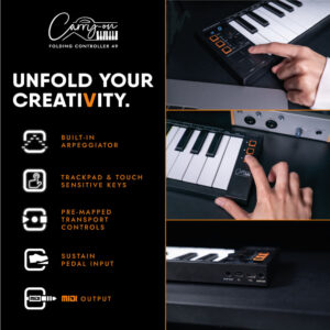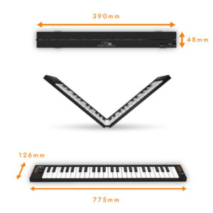 A lightweight and compact design that unfolds into a full length 49-key MIDI controller